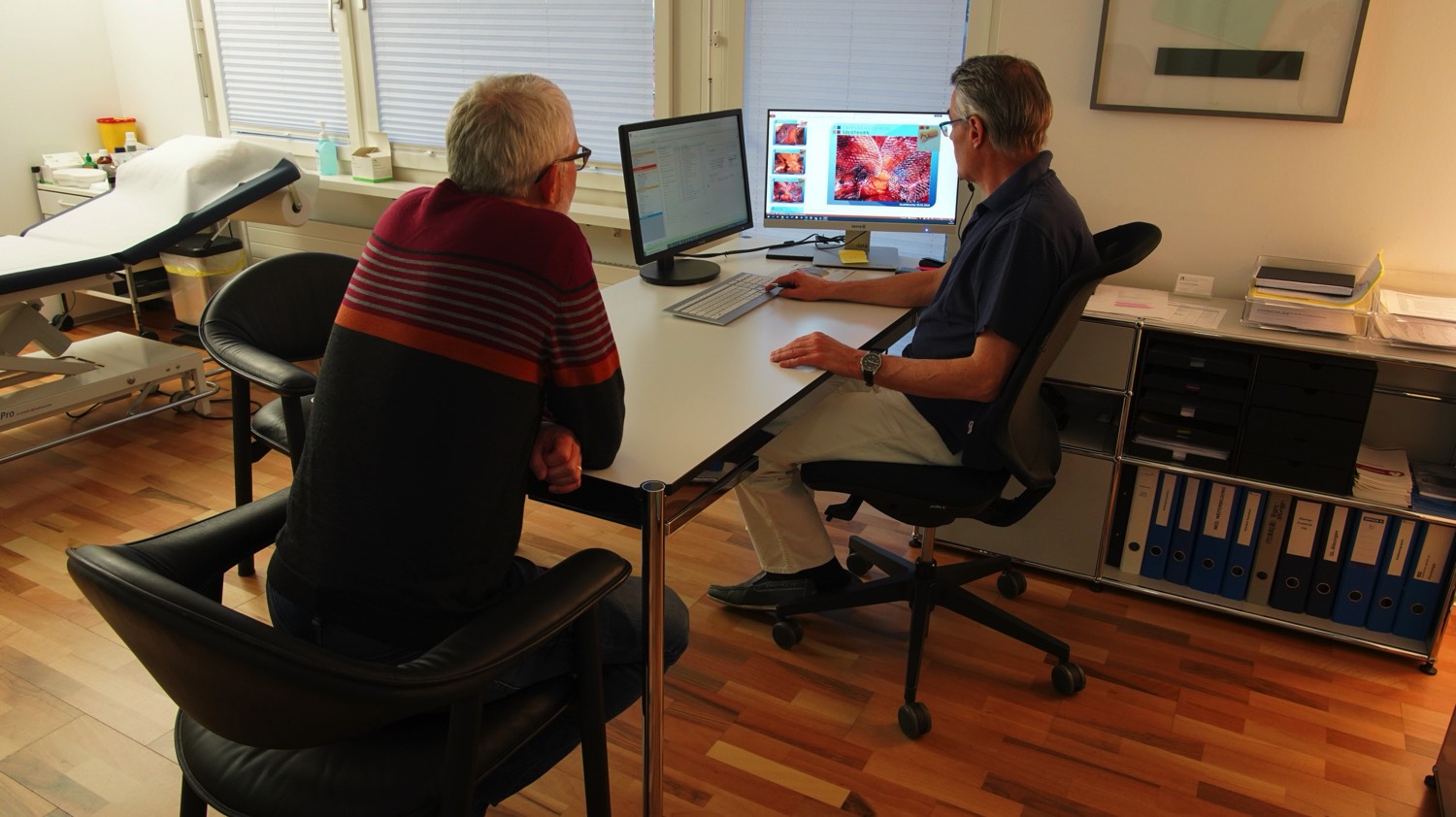 In der Sprechstunde wird der Befund beurteilt und der geplante Eingriff und potentielle Risiken besprochen. Gemeinsam planen wir dann die Operation an einem für Sie passenden Termin.
