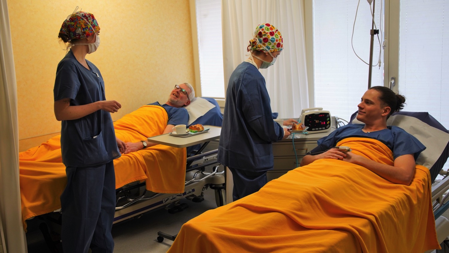 Nach der Operation werden Sie von unserem medizinischen Personal und dem Narkoseteam auf der Überwachungsstation und später auf der Tagesstation betreut. Gerne servieren wir Ihnen auch einen kleinen Imbiss.